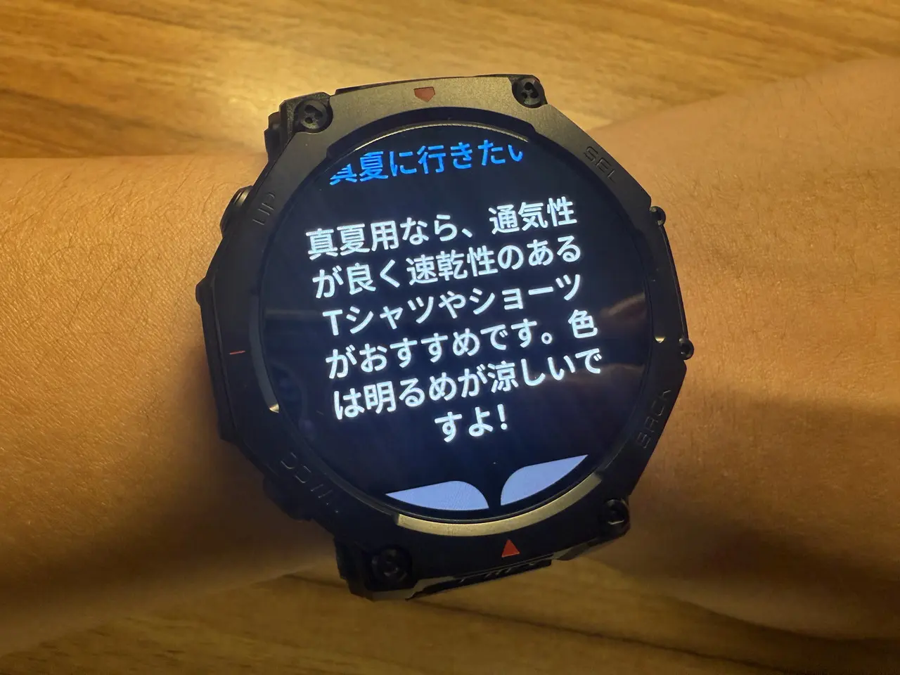 例えば、天気の確認やアラーム設定、ワークアウトの開始などを声だけで操作できるため、手がふさがっている登山中やランニング中でもスムーズに利用できます。応答はスピーディで、求めている機能を即座に案内してくれます。