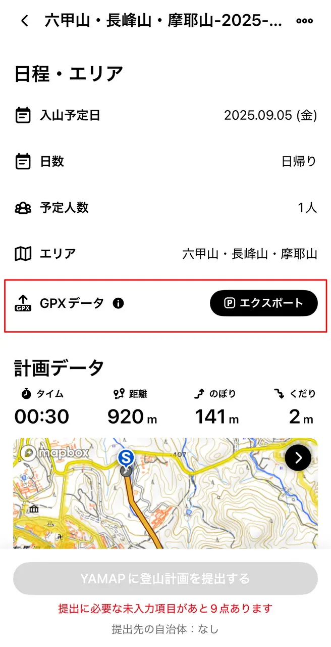 YAMAP(ヤマップ)・ヤマレコで作成したGPXデータを使用可能