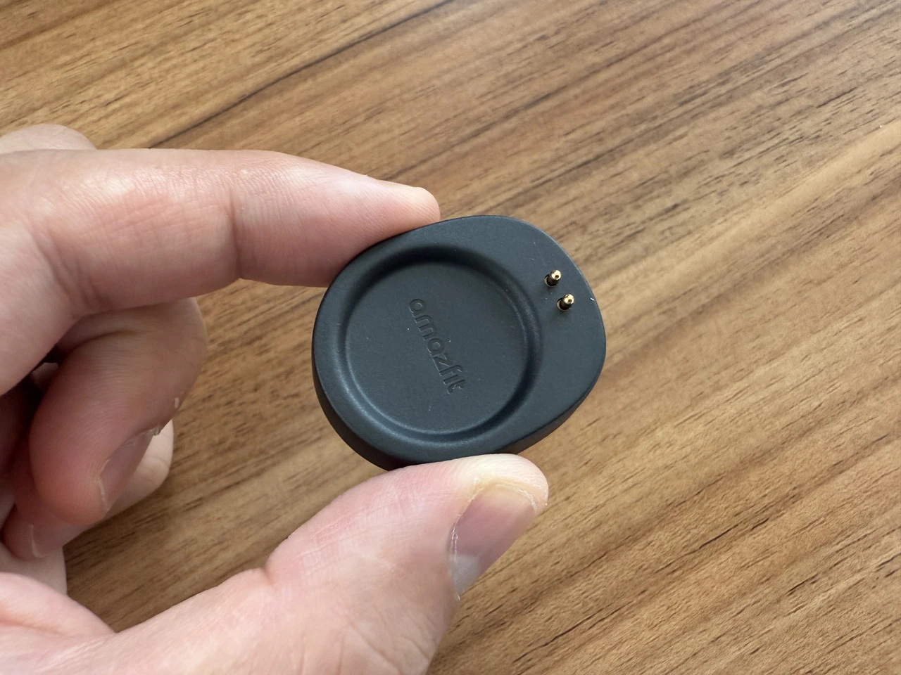 付属の専用充電ベースを利用することで、ウォッチを充電できる。