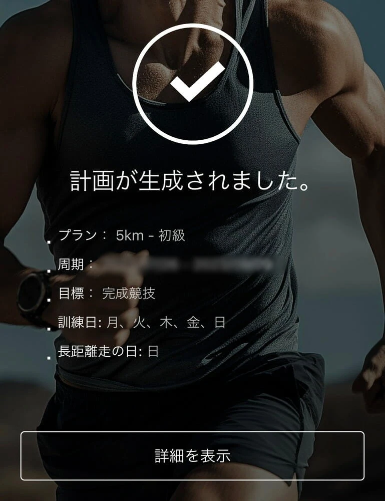 回答が完了すると、AIが最終的なランニングプランを作成してくれる。