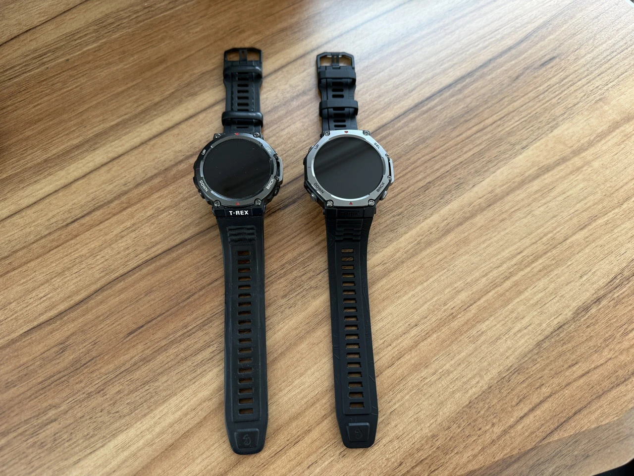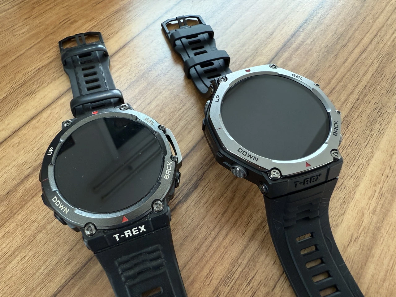 ▼Amazfit T-Rex 2(左)と Amazfit T-Rex 3(右)を並べた様子。