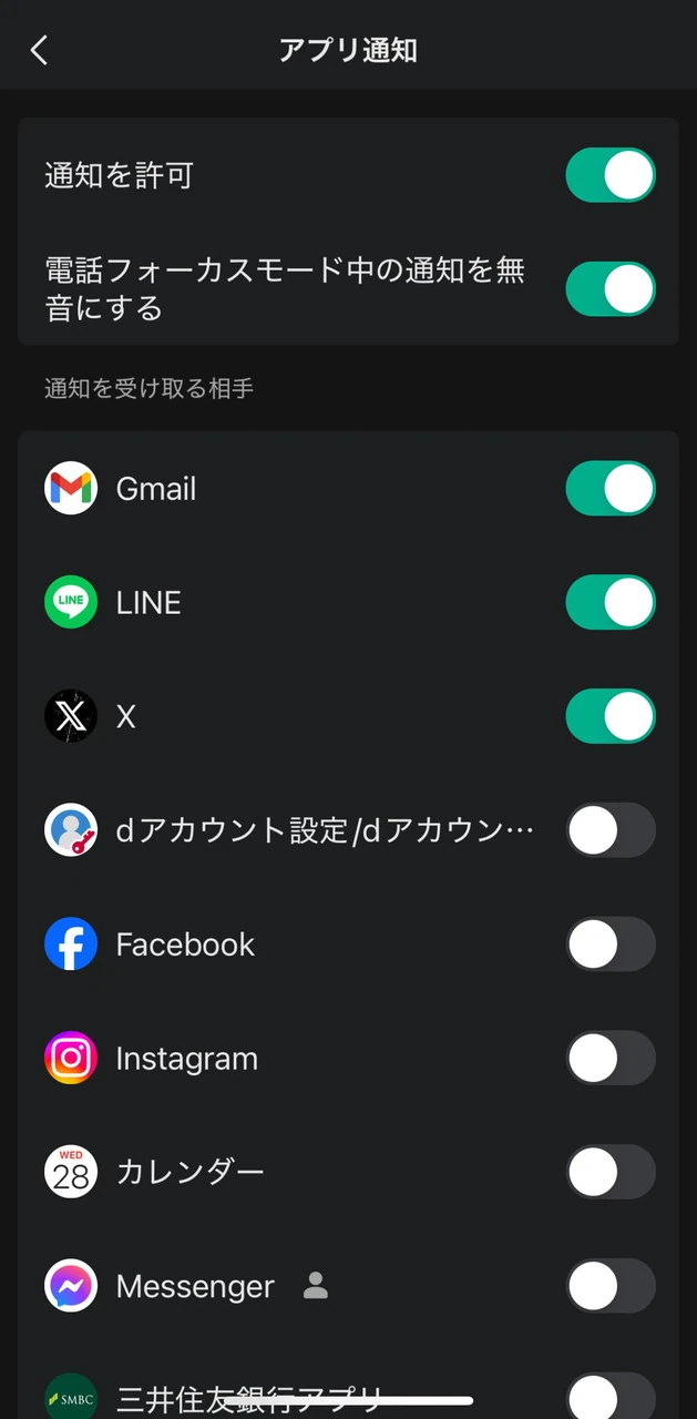 ▼アプリごとに通知のON/OFFを切り替えられる点もGOOD。