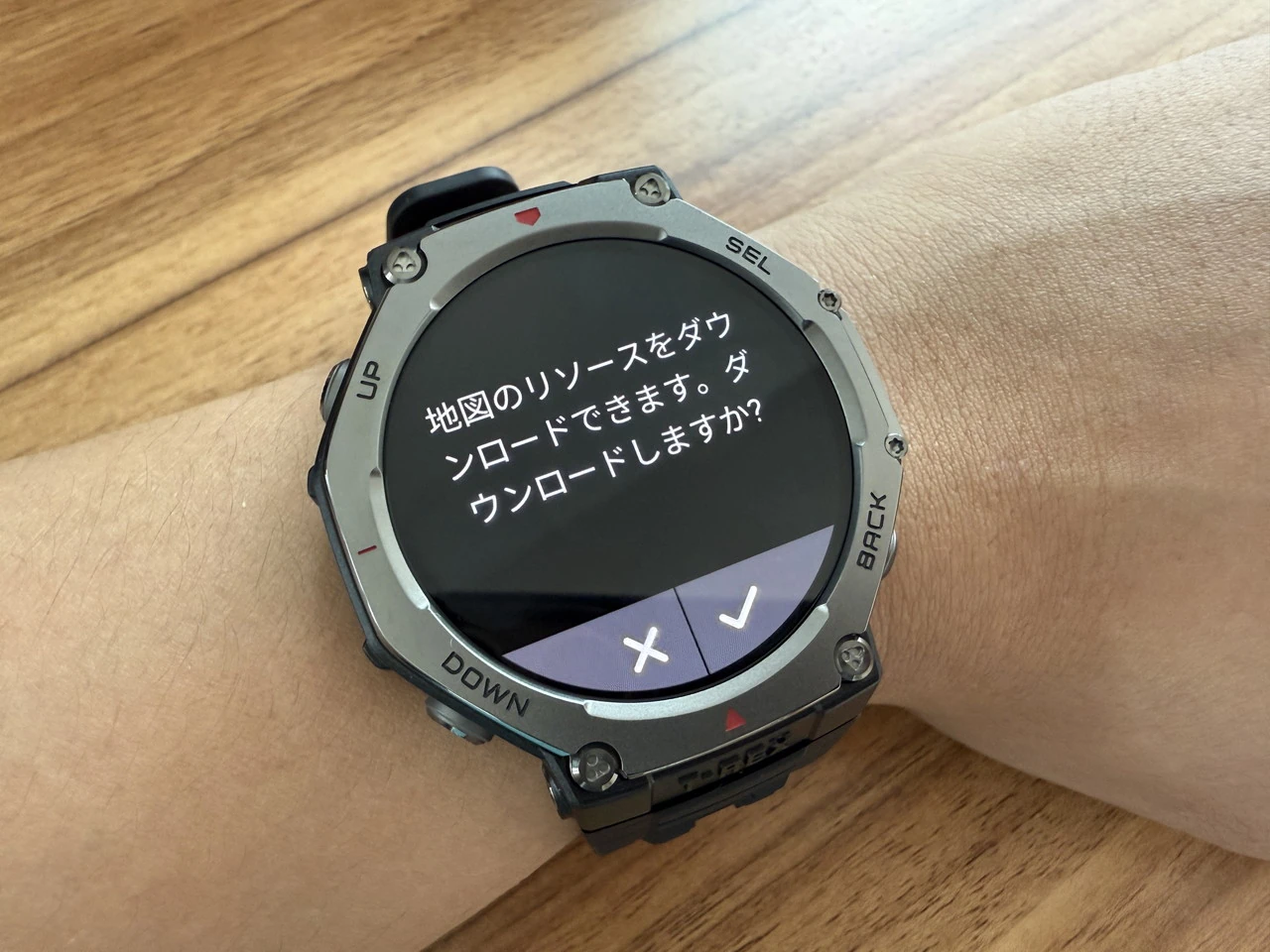 本製品はアプリ経由でオフラインマップをダウンロードし、ウォッチ上で表示することができる。