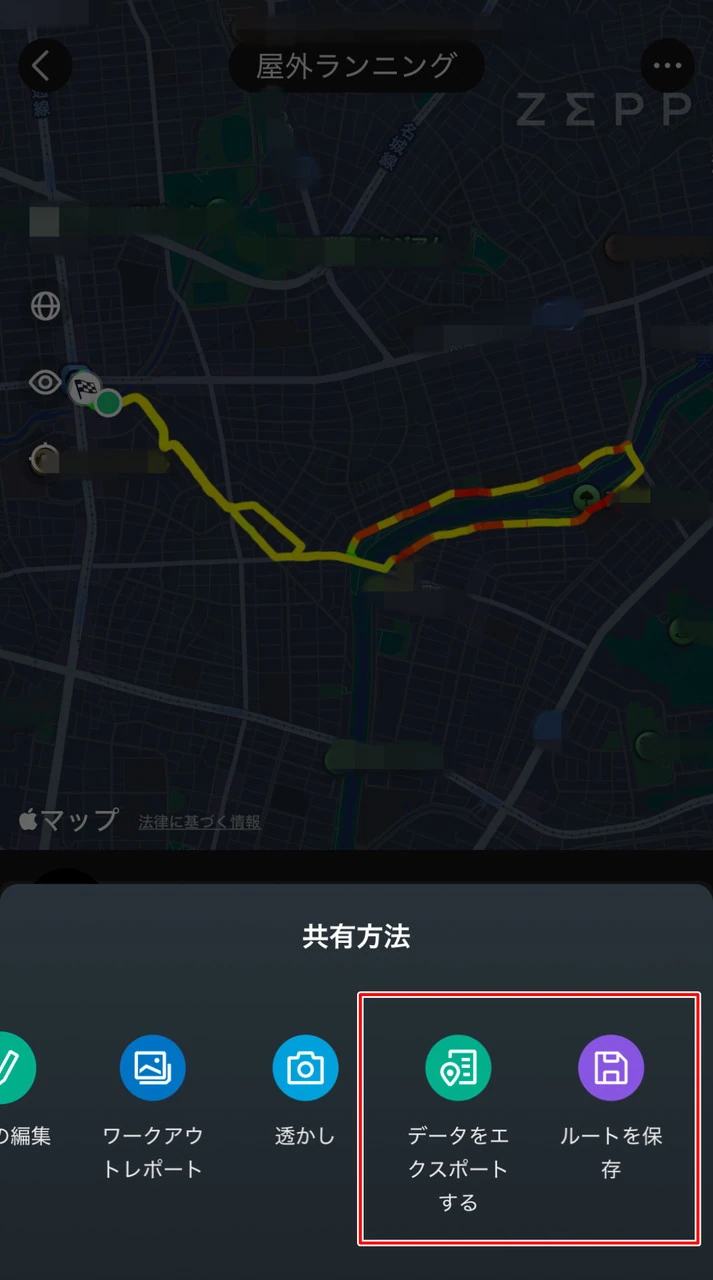 記録したルートデータはエクスポート(出力)して、他の人と共有できる。