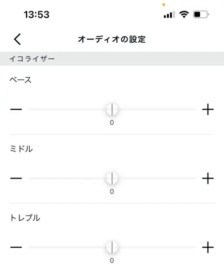 ▼簡易的なイコライザーが用意されており、音質の調整が可能。