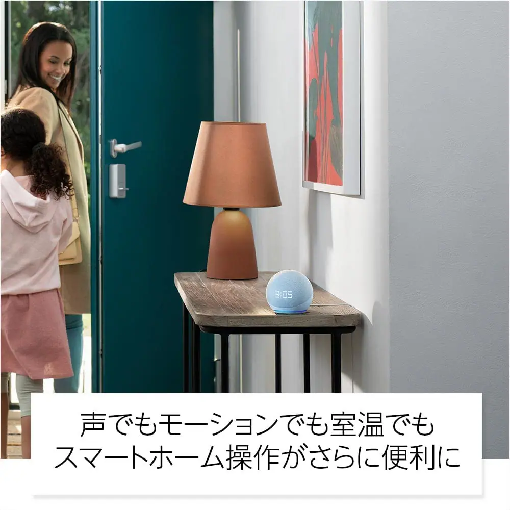 第4世代Echo Dotと同じサイズにもかかわらず、10%大きくなったスピーカーによる更にクリアなボーカル、より深い低音、そして鮮やかなサウンドが楽しめる、Alexa(アレクサ)搭載スマートスピーカーとなっている。