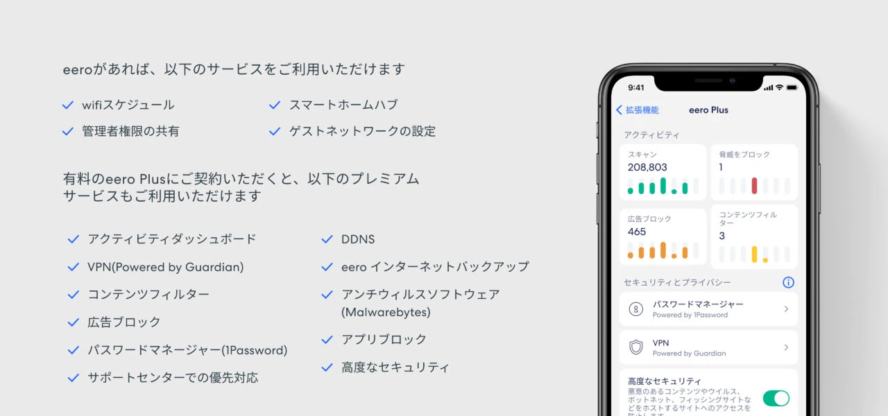 ▼有料のeero Plusに契約することで、プレミアムサービスも利用可能に。