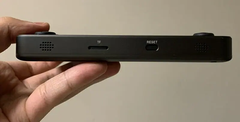 ▼本体下部には、2基のスピーカーとTFカードスロット、リセットボタンが用意。