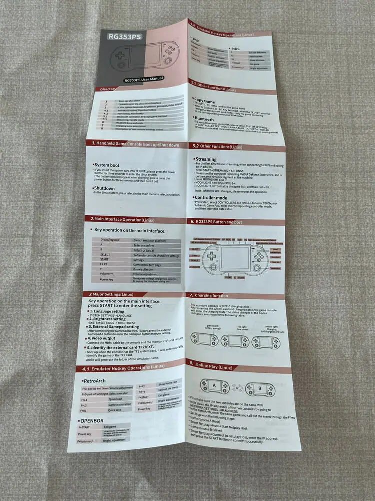 OSはLINUXを採用しており、CPUにはRK3568(ARM Cortex-A55)クアッドコアプロセッサーを、RAM(メモリ)は1GB LPDDR4を搭載。プレイステーションやゲームボーイアドバンスなどのレトロゲームを快適に遊べる性能を擁している。