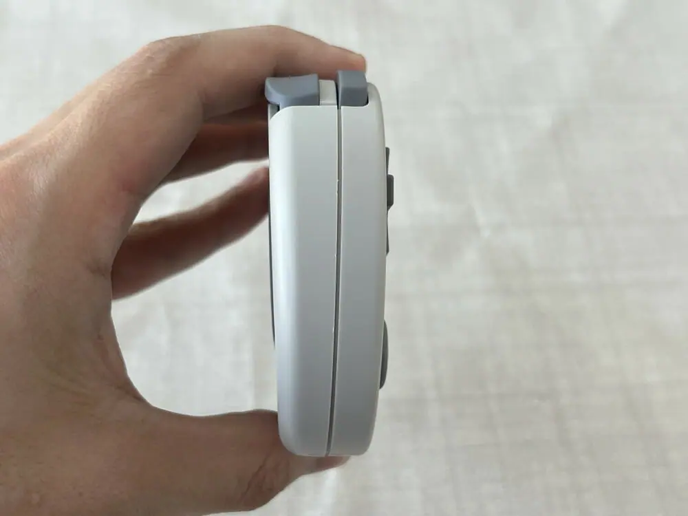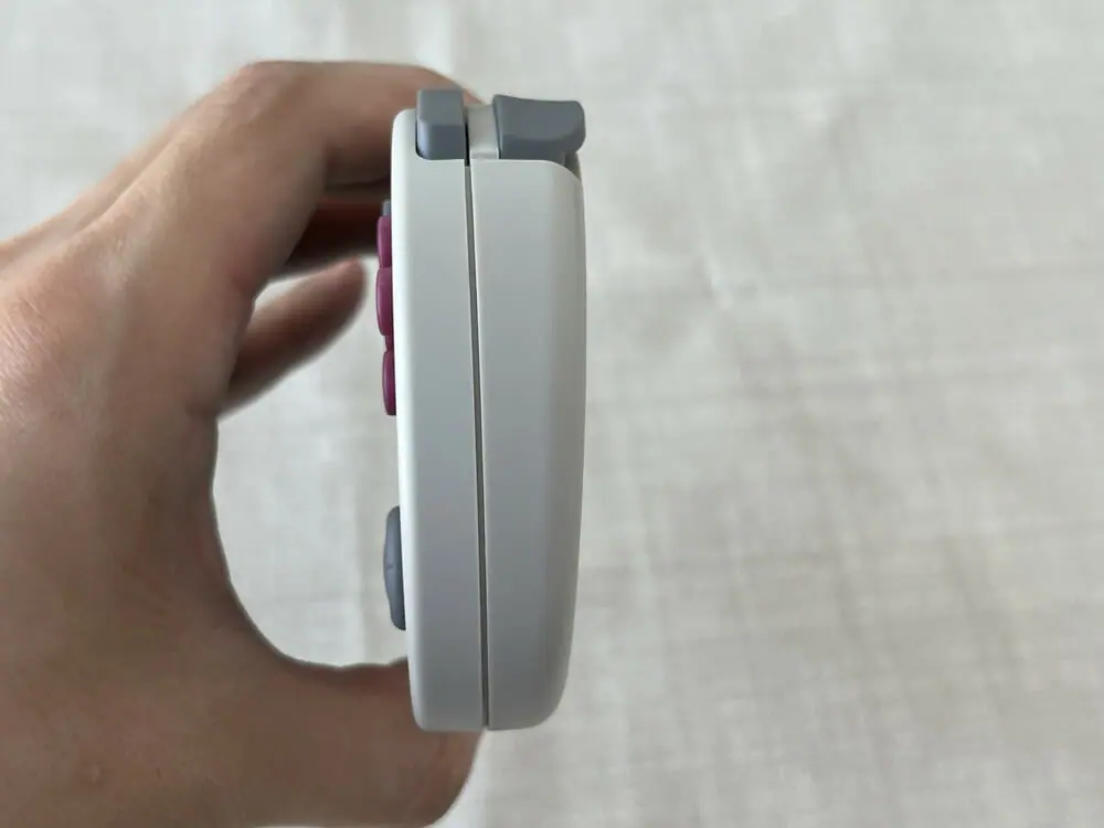 ▼ゲーム機本体。レトロゲーム機のコントローラを彷彿とさせる味のあるデザイン。なお今回のレビュー時にはグレー色を提供していただいている。