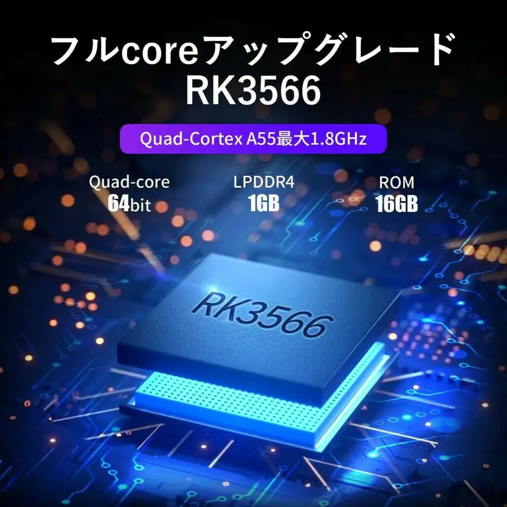 17.4cm×8.1cm×2.0cm、約209gというコンパクトかつ軽量な筐体に、RK3568(ARM Cortex-A55)クアッドコアプロセッサーを搭載。RAMは1GB LPDDR4を採用しており、優れたパフォーマンスを発揮するモデルとなっている。