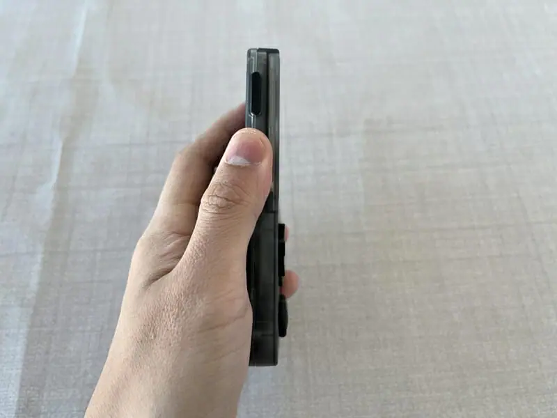 ▼片手に収まるほどのコンパクトなポータブルデバイスとなっており、ポケットやカバンなどに入れてラクラク持ち運ぶことが出来るだろう。