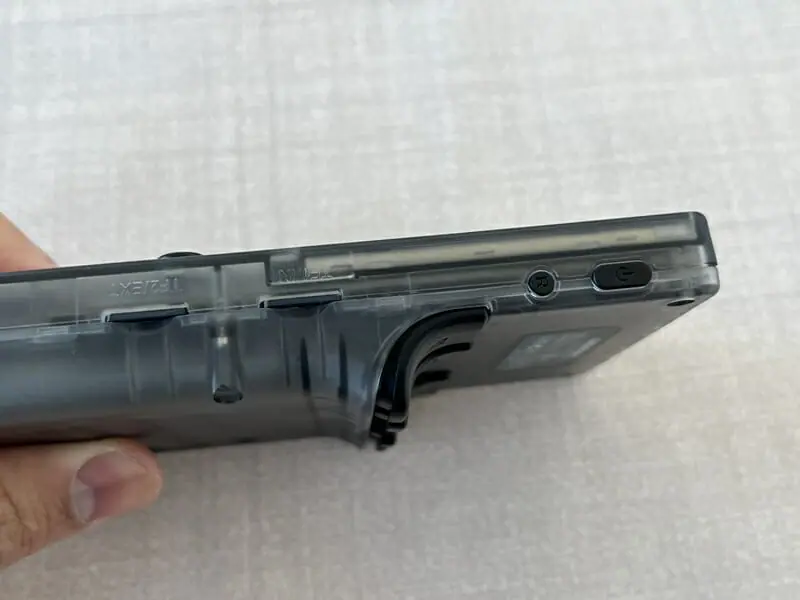 ▼ゲーム機本体。見た目的にはゲームボーイカラーに近い印象を受けるデザインだ。なお今回のレビュー時にはスケルトンブラック色を提供していただいている。