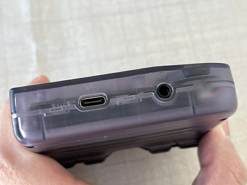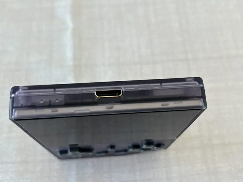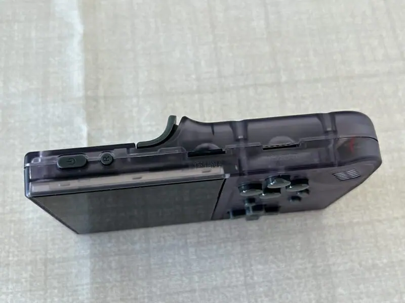 ▼ゲーム機本体。見た目的にはゲームボーイカラーに近い印象を受けるデザインだ。なお今回のレビュー時にはスケルトンパープル色を提供していただいている。