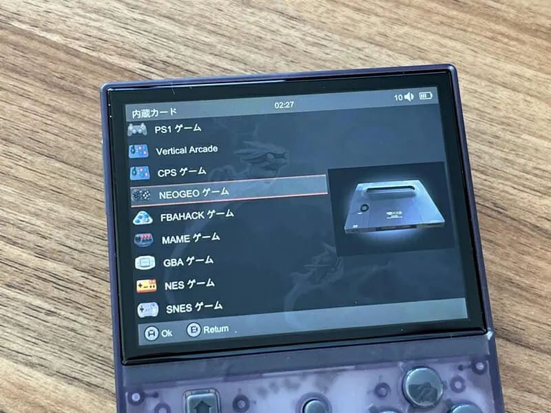 | 対応エミュレータ | PS1, CPS, FBA, NEOGEO, GBA, GBC, GB, SFC, FC, MAME, MD, for GG, PCE, NGPC, SMS, WSCなど |