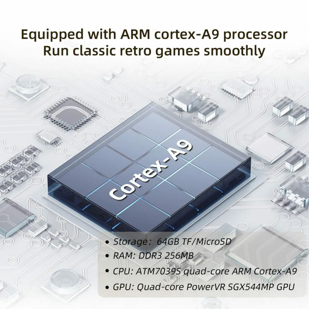 外部マイクロSDカードの挿入に対応しており、購入時点でエミュを内蔵した64GBのTFカードが付属している。必要に応じて最大512GBまでのTFカードの挿入も可能。