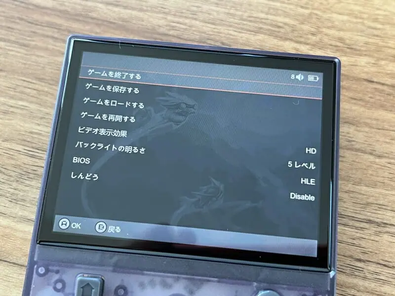 ▼なお、ゲーム中にメニューボタンを押すことで、ゲームの中断や再起動、途中セーブ、BIOSの起動などを行うことが出来る。