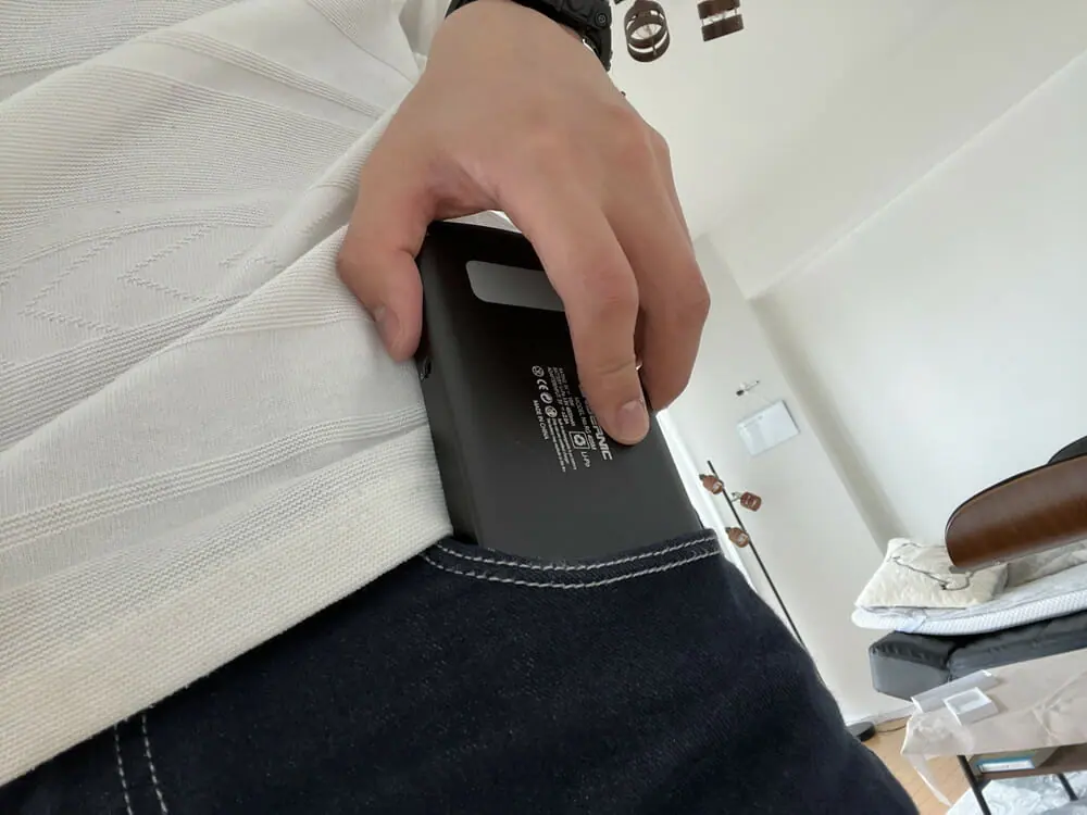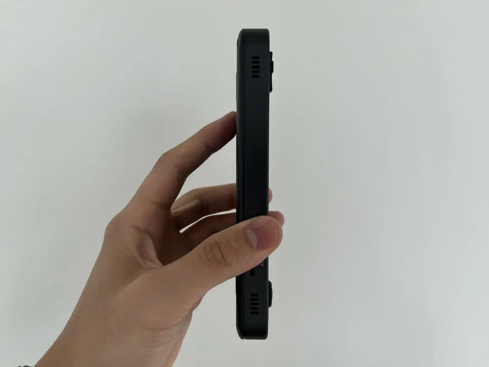 片手に収まるほどのコンパクトなポータブルデバイスとなっており、ポケットやカバンなどに入れてラクラク持ち運ぶことが出来るだろう。