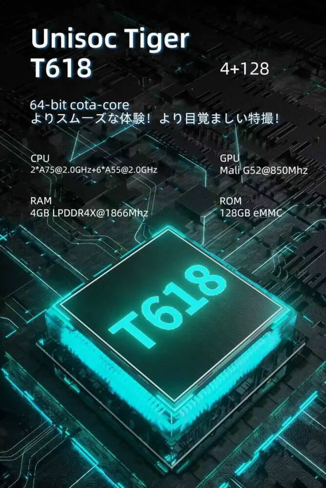 OSはAndroid 12を採用しており、CPUにはUnisoc Tiger T618を、RAM(メモリ)は4GB LPDDR4を搭載。Android向けのゲームアプリから、プレイステーションやゲームボーイアドバンスなどのレトロゲームまで快適に遊べる性能を擁している。
