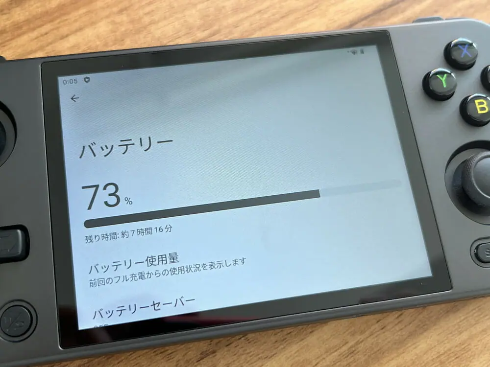 公式は「連続使用時間7時間可能」を謳っているが、実際にゲームアプリなどで長時間使用してみたところ、6~7時間程度はバッテリーが問題なく持続した。
