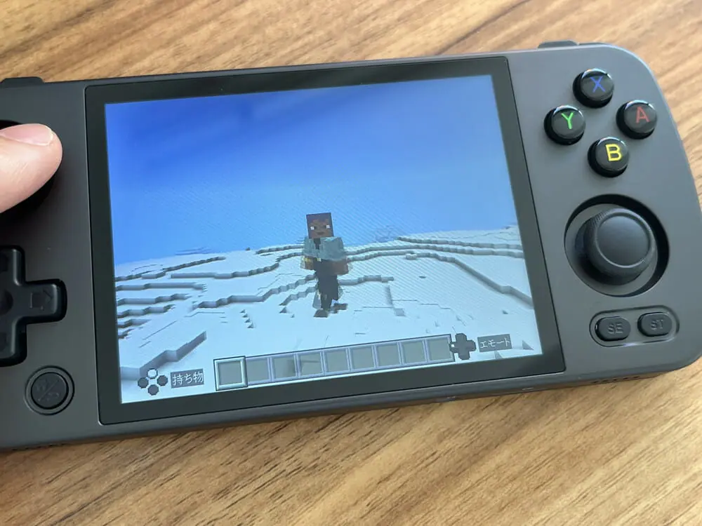 スマホ版マイクラはゲームパッドでの操作にデフォルトで対応しており、『ANBERNIC RG405M』のアナログスティックと各種ボタンを用いて快適な操作を楽しむことができた。