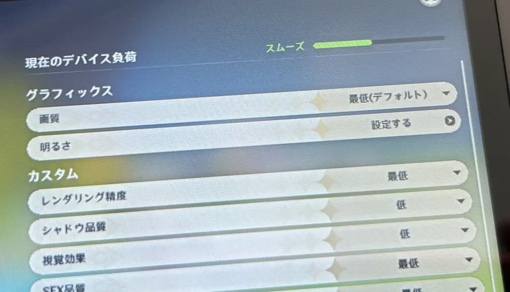 このように『原神』クラスのゲームアプリでも、画質設定をある程度落とすことで、比較的スムーズにプレイできた。