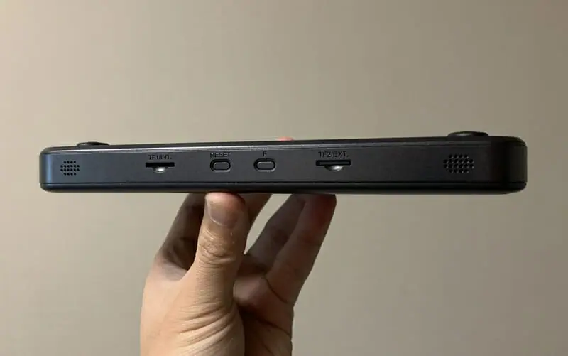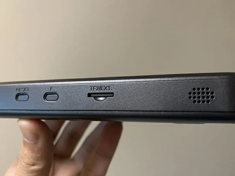 ▼筐体下部には2基のスピーカーと2つのTFカードスロット、リセットボタン、ファンクションボタンが搭載。