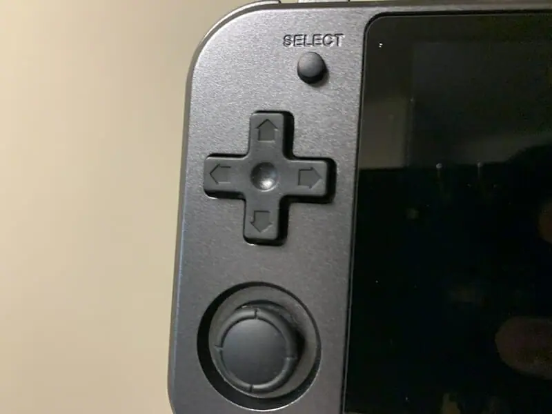 ▼正面左側には、セレクトボタン、十字キー、アナログスティック(左)が搭載。