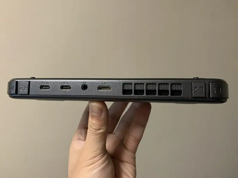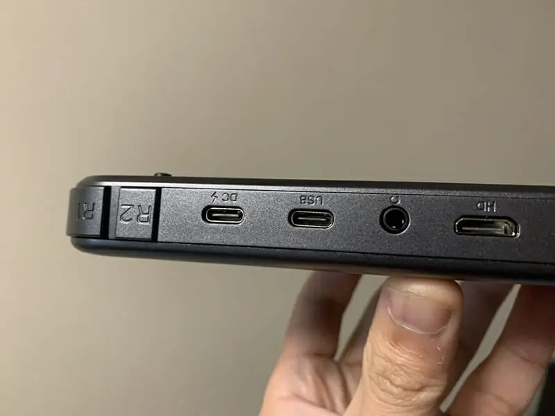 ▼筐体上部にはL1/L2ボタン、R1/R2ボタンに加えて、DCポート、mini HDMIポート、USBポート、3.5mmオーディオジャックが用意されている。