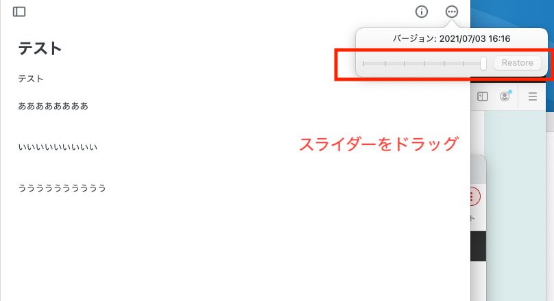 このスライダーをドラッグすると、テキストを各保存時間に巻き戻すことができます。