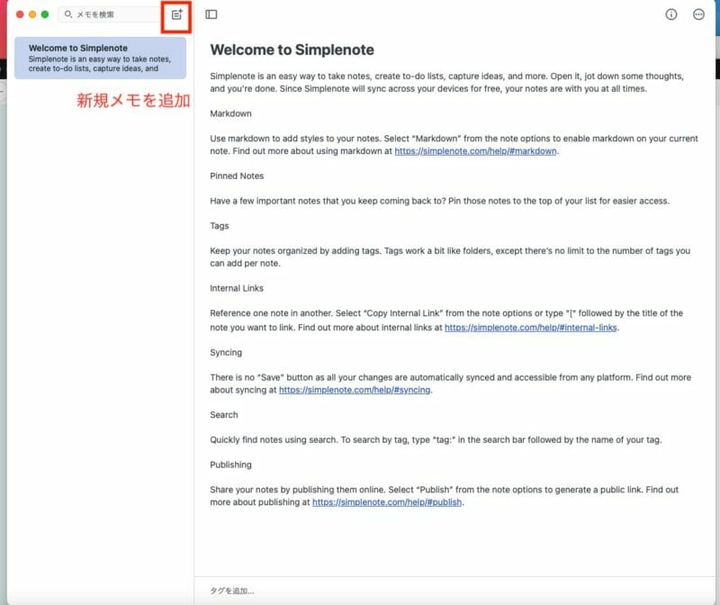 下部のフォームでタグを追加することができます。タグを追加することでメモが増えてきた際に、管理しやすくなります。
