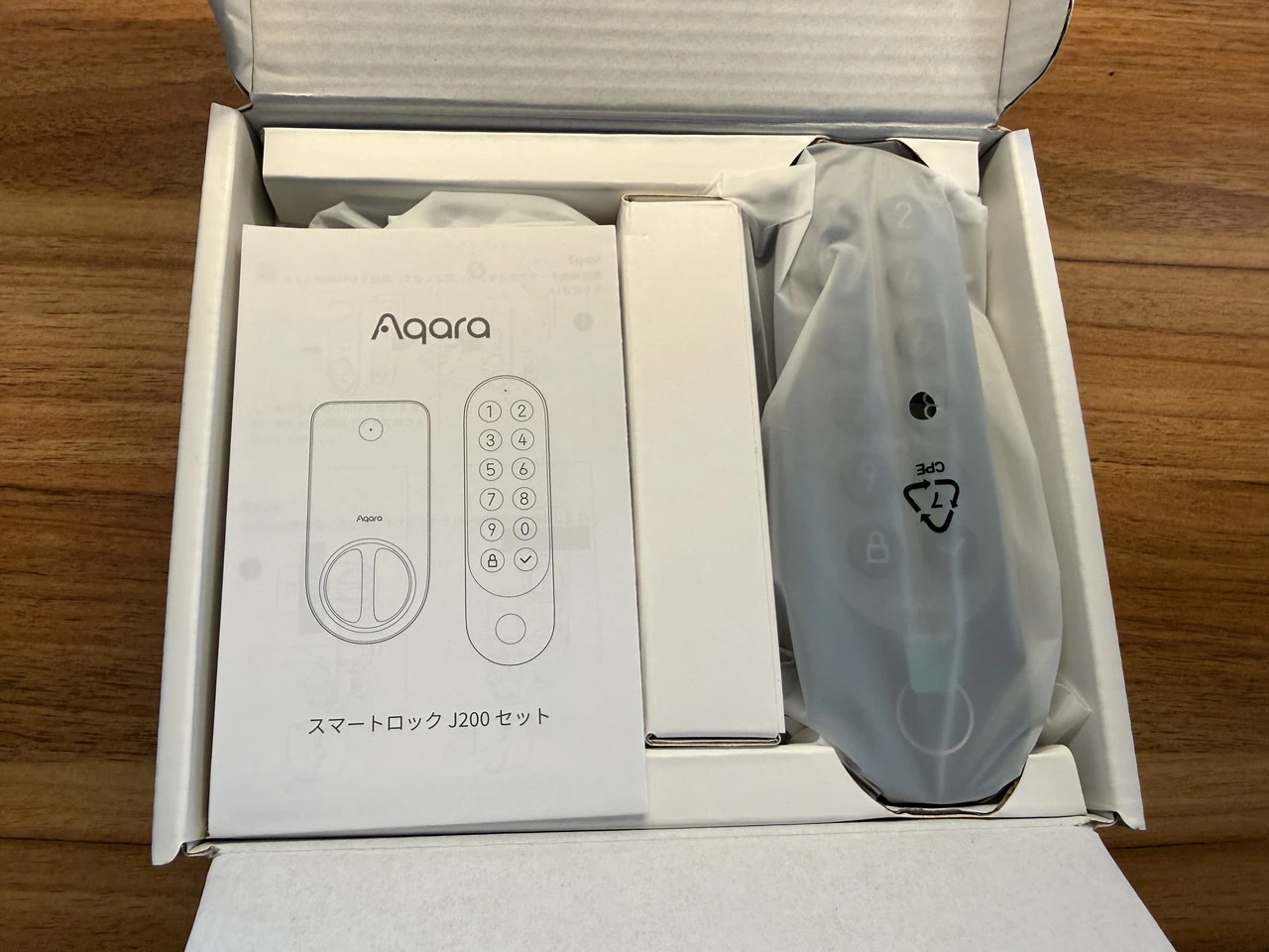 AqaraスマートロックJ200の箱を開けた状態