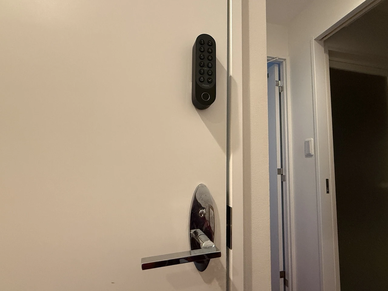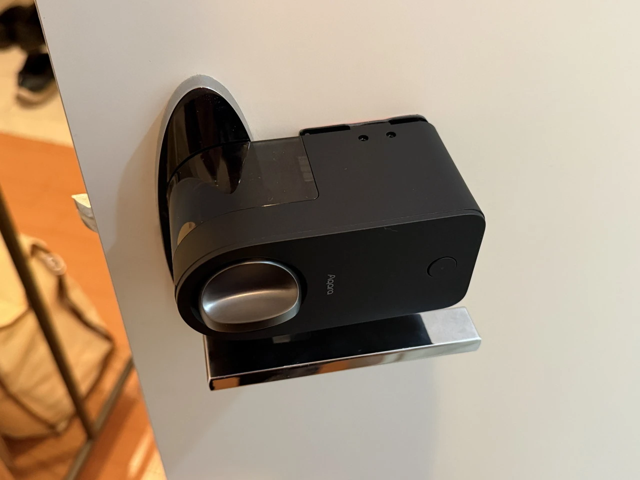 以前から、レビュー品を収納するためのクローゼットを家族に勝手に開けられて困っていました。そこで、Aqara J200およびキーパッドをクローゼットの扉へ実際に取り付けてみました。