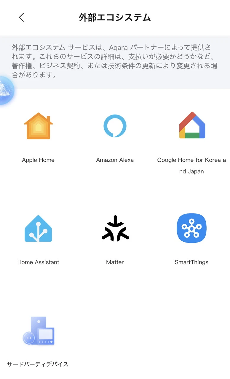 主な対応サービス Apple Home、Google Home、Amazon Alexa、Samsung SmartThings、Home Assistant