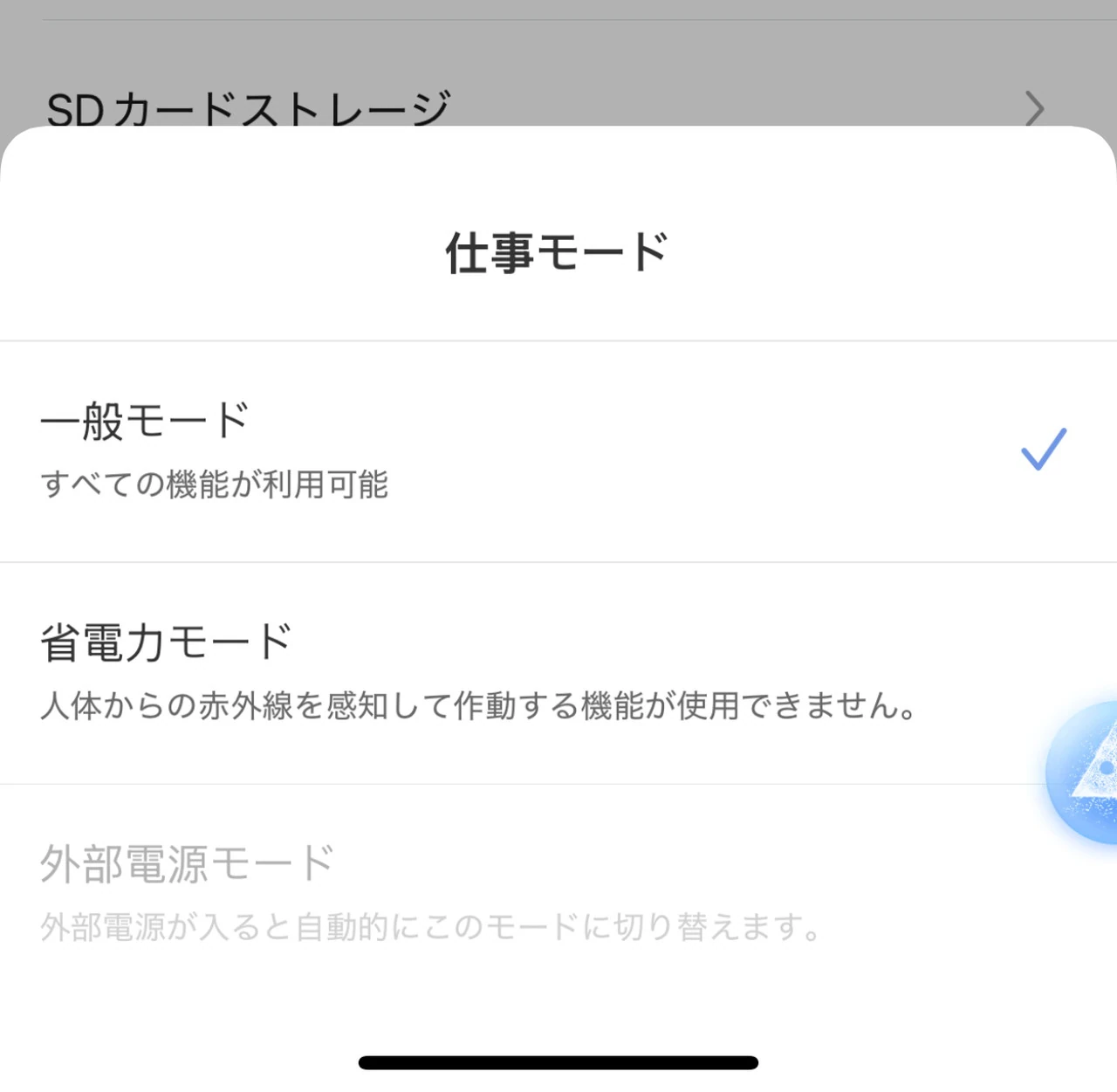 ▼動作モードを「省電力モード」に切り替えれば、バッテリーをより長持ちさせることができる。