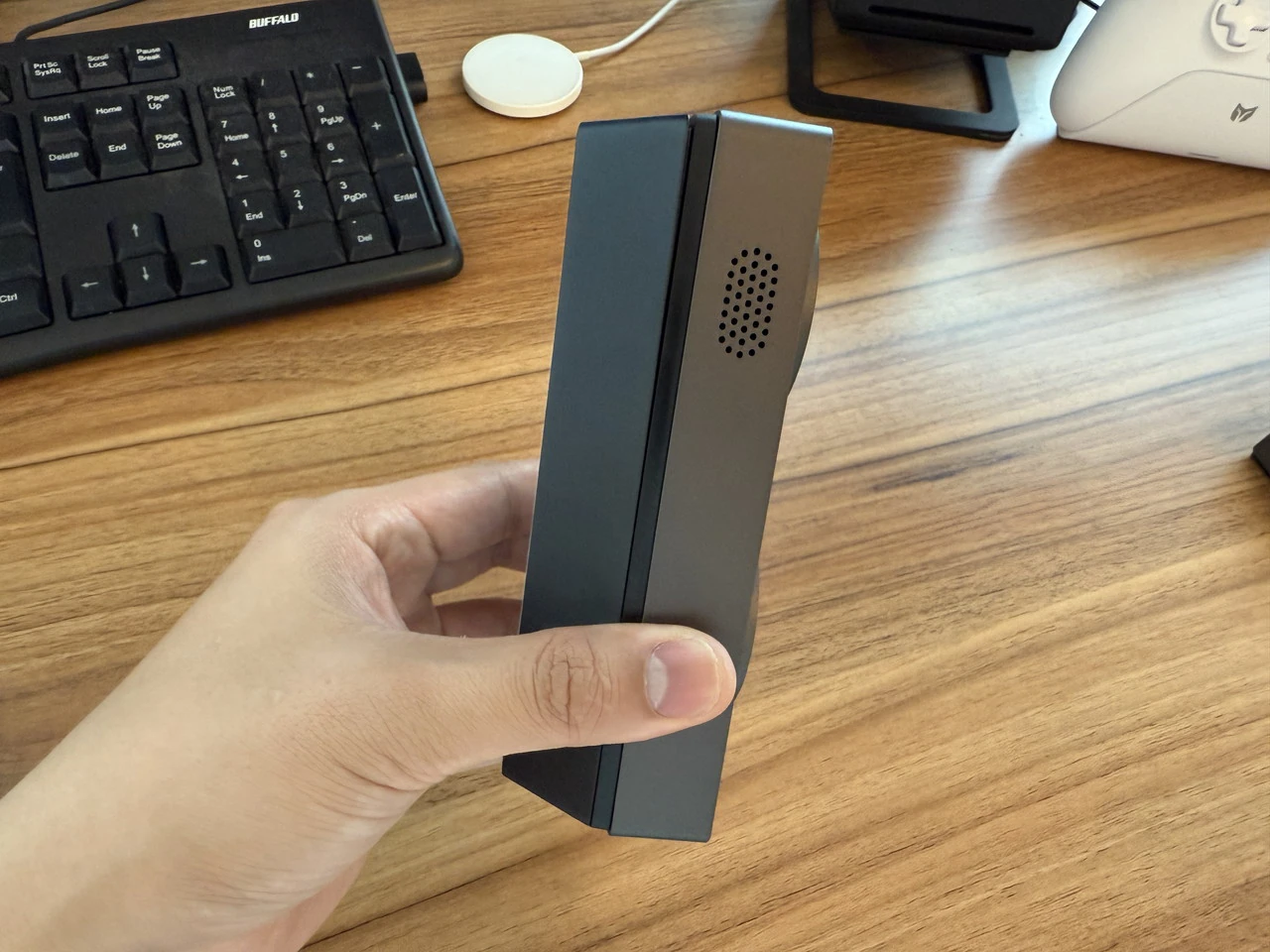 ▼左側面の様子。スピーカーが内蔵。