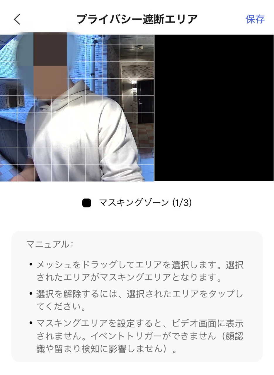 ▼マスキングゾーンを設定することで、自身や近隣住民のプライバシーを保護できる。