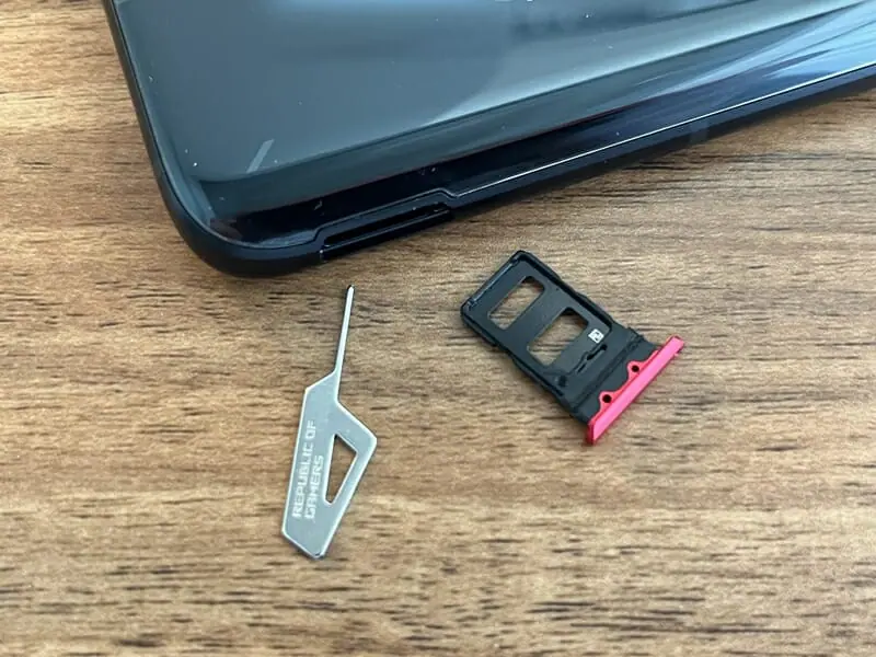 ▼付属のピンを用いてスロットを開き、デュアルnanoSIMカードの挿入が可能だ。マイクロSDカードの挿入には対応していない。