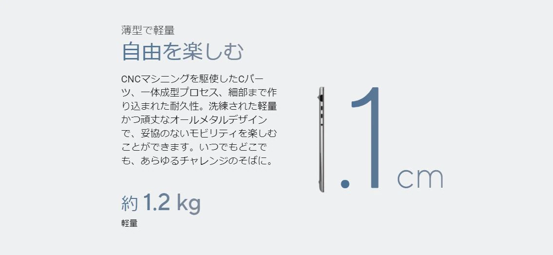 薄型・軽量でスタイリッシュなデザインと、あらゆる用途を快適にこなせる性能、そして優れた耐久性も兼ね備えた、最新のハイエンドノートPCとなっています。仕事やクリエイティブな作業だけでなく、軽めのゲーミングも楽しめるでしょう。