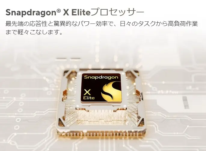 | プロセッサー | Qualcomm® Snapdragon® Xシリーズ | Qualcomm® Snapdragon® X Eliteシリーズ |