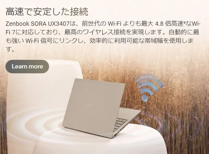 「ASUS Zenbook SORA UX3407RA」のスペック&特徴