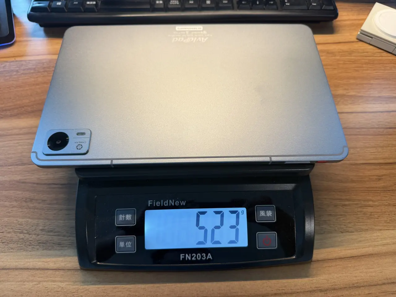 ▼本体重量は実測で約523g。このサイズのタブレットとしては一般的な重さだ。