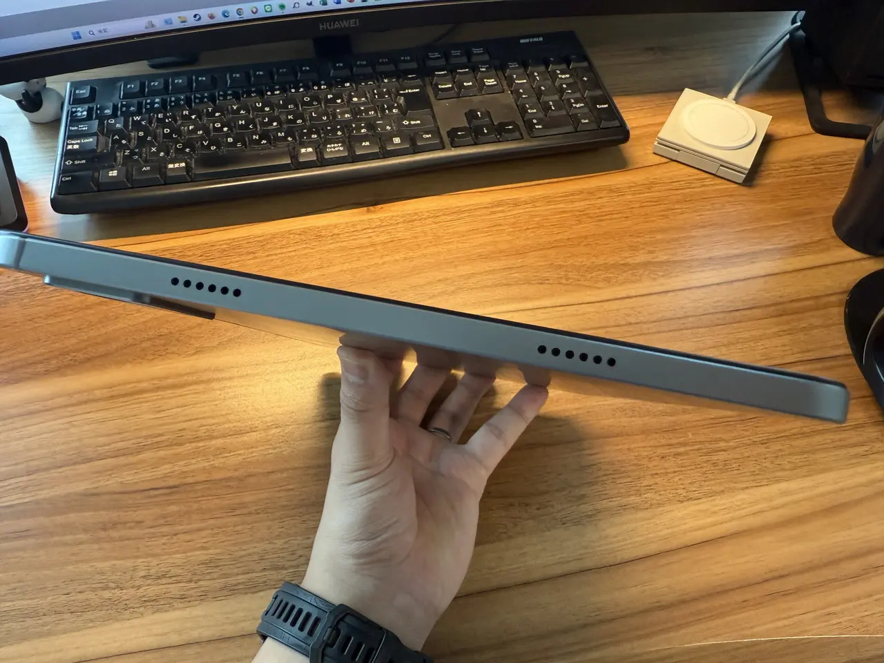 12インチIPSスクリーンは、2000×1200解像度、および最高90Hzのリフレッシュレートに対応。WidevineはL1サポートとなっている。クアッドスピーカー内蔵。
