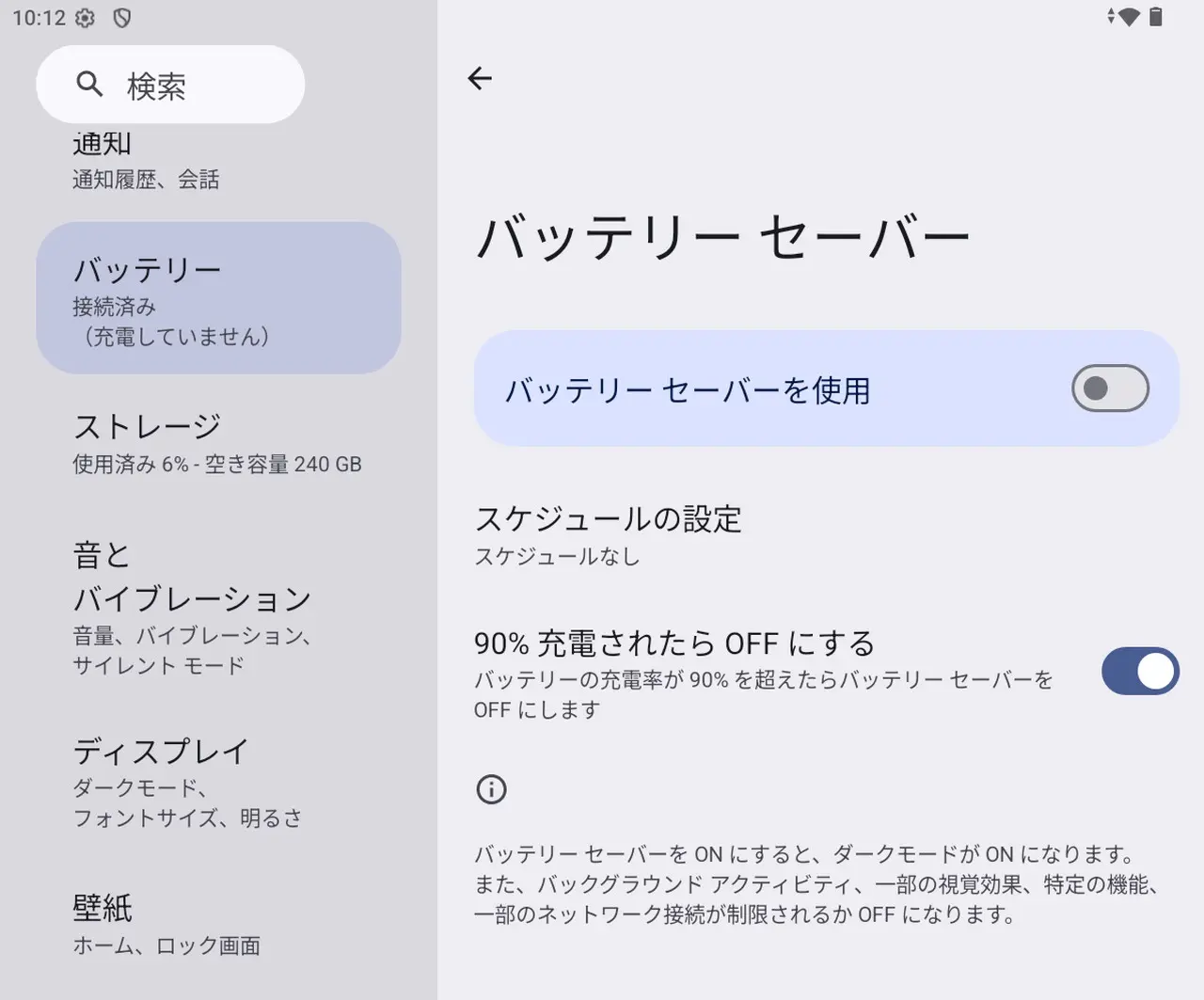 ▼バッテリーセーバーを起動すれば、より長時間の利用が可能。