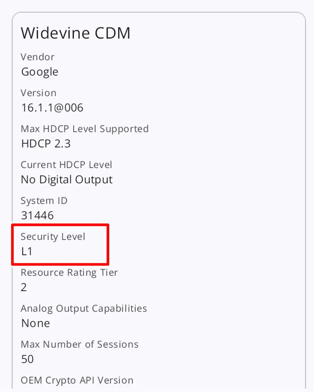 WidevineはL1サポートとなっており、ネトフリやAmazon Primeビデオなどのサービスで高画質設定の映像を楽しめる。