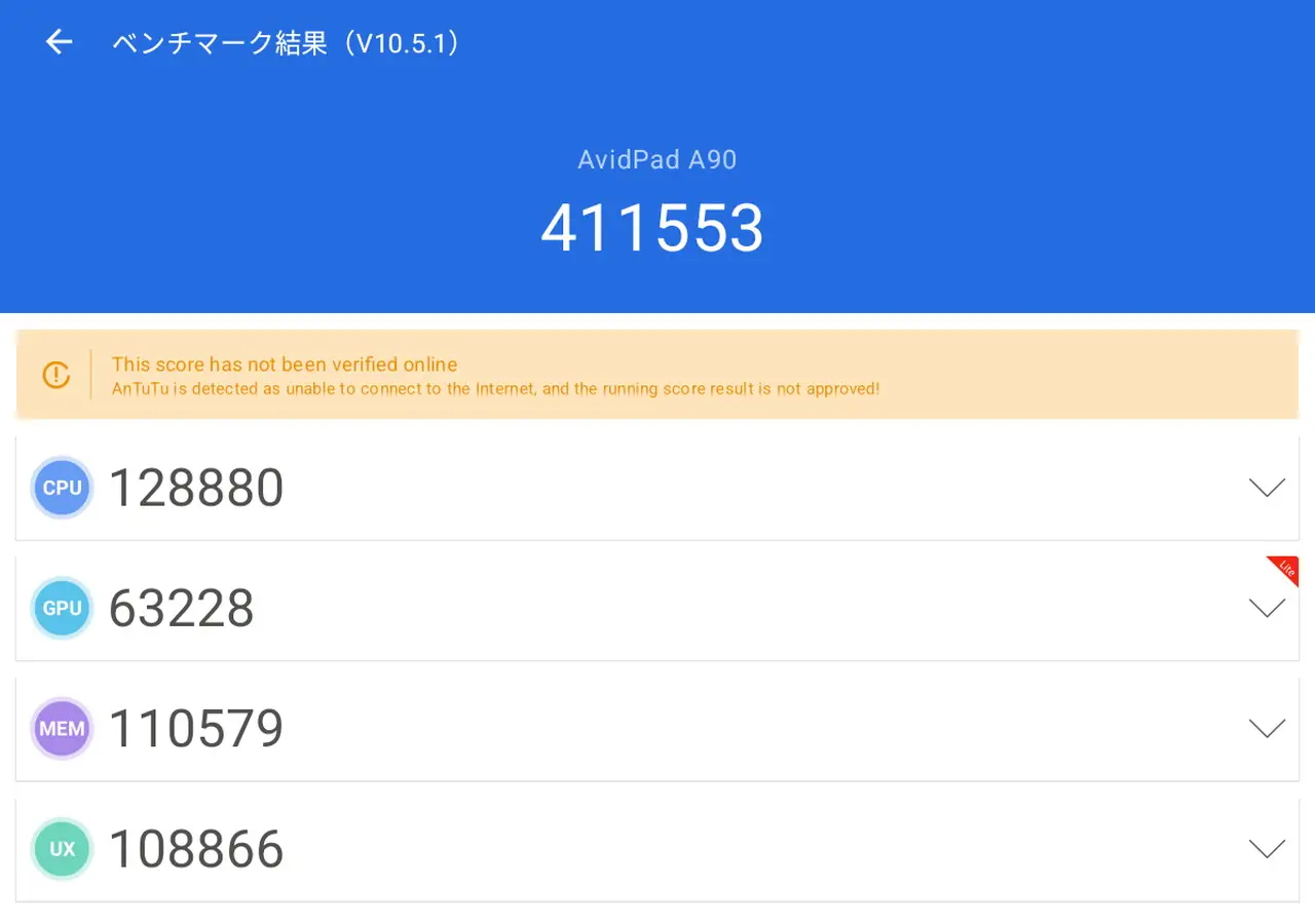 『AvidPad A90』のAnTuTuベンチマークテスト結果