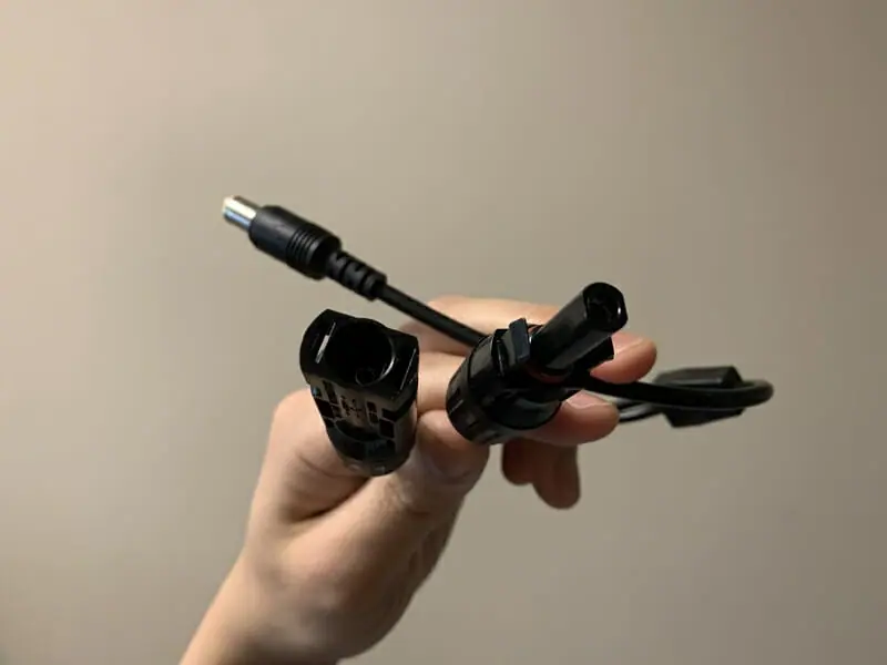 ▼ソーラーパネル等から充電を行うための『MC4充電ケーブル』。