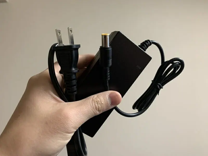 ▼自宅コンセントからポータブル電源に充電を行うための『100VCAアダプター』。