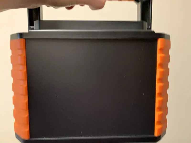 ポータブル電源自体は実にコンパクトで軽く、片手で簡単に持つことが出来る。