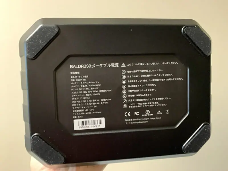 今回紹介した『BALDR ポータブル電源330W』の特長は、以下の通りだ。